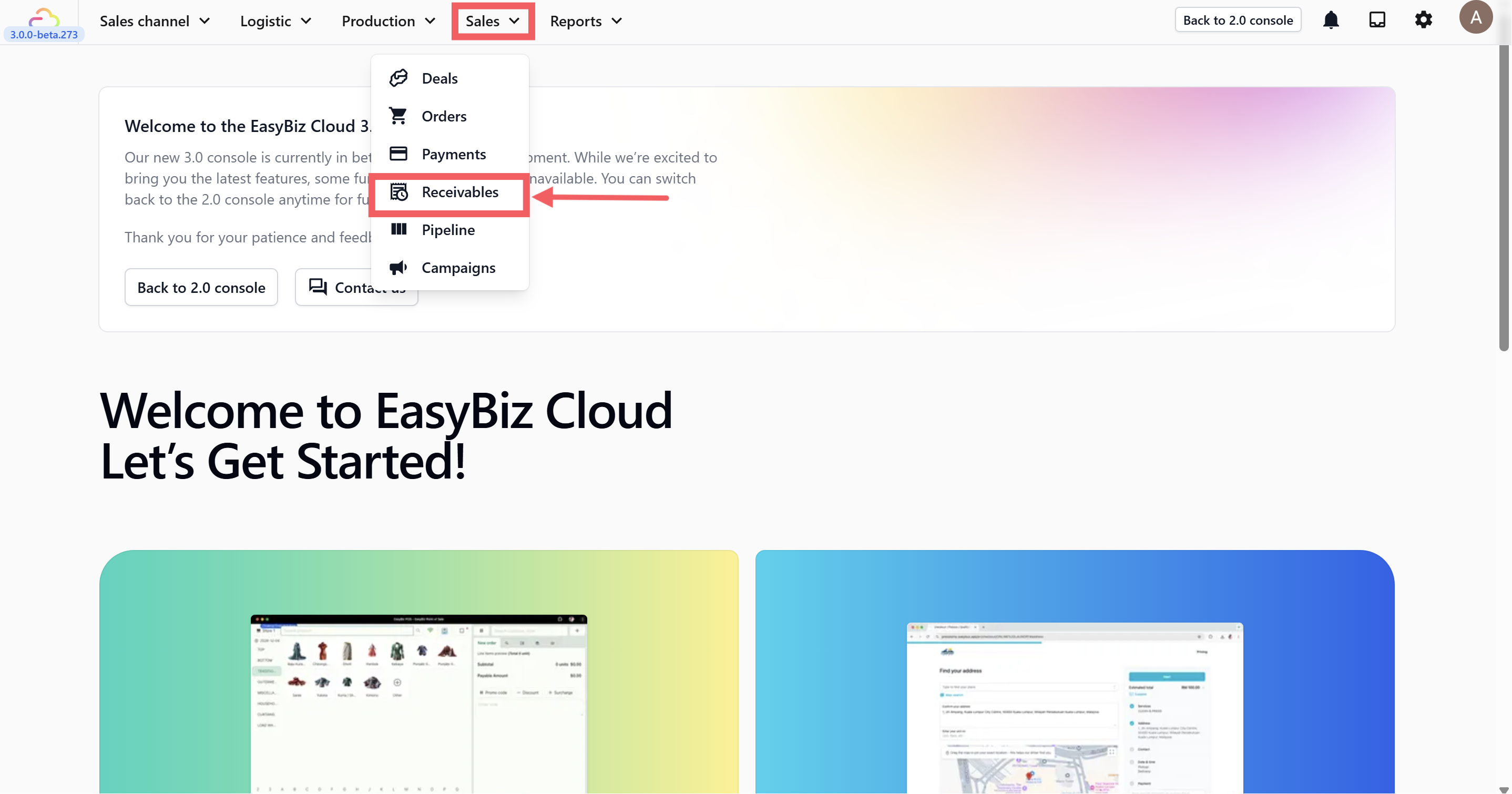 You will see it under Sales in the top menu bar. Click Sales and select Receivables from the dropdown menu.