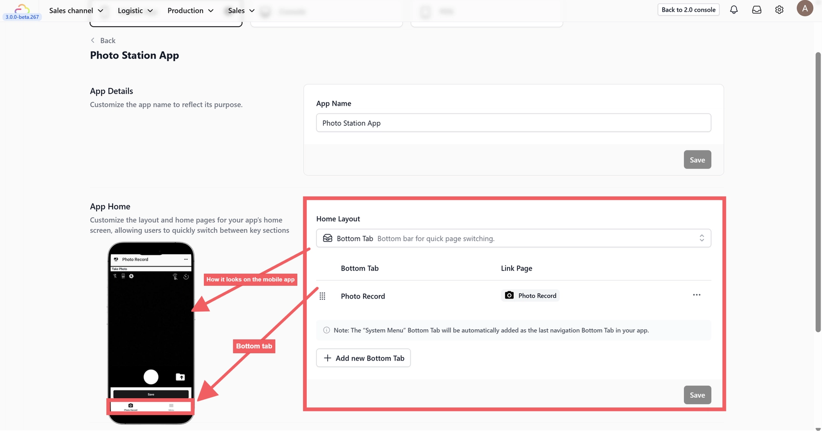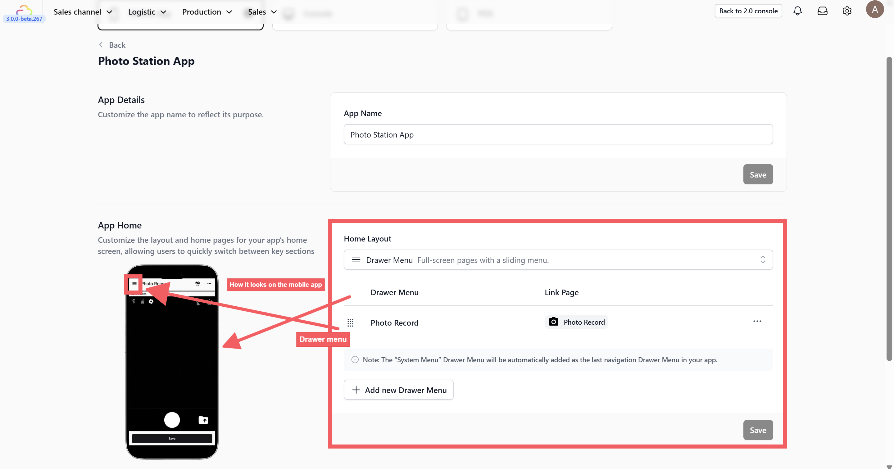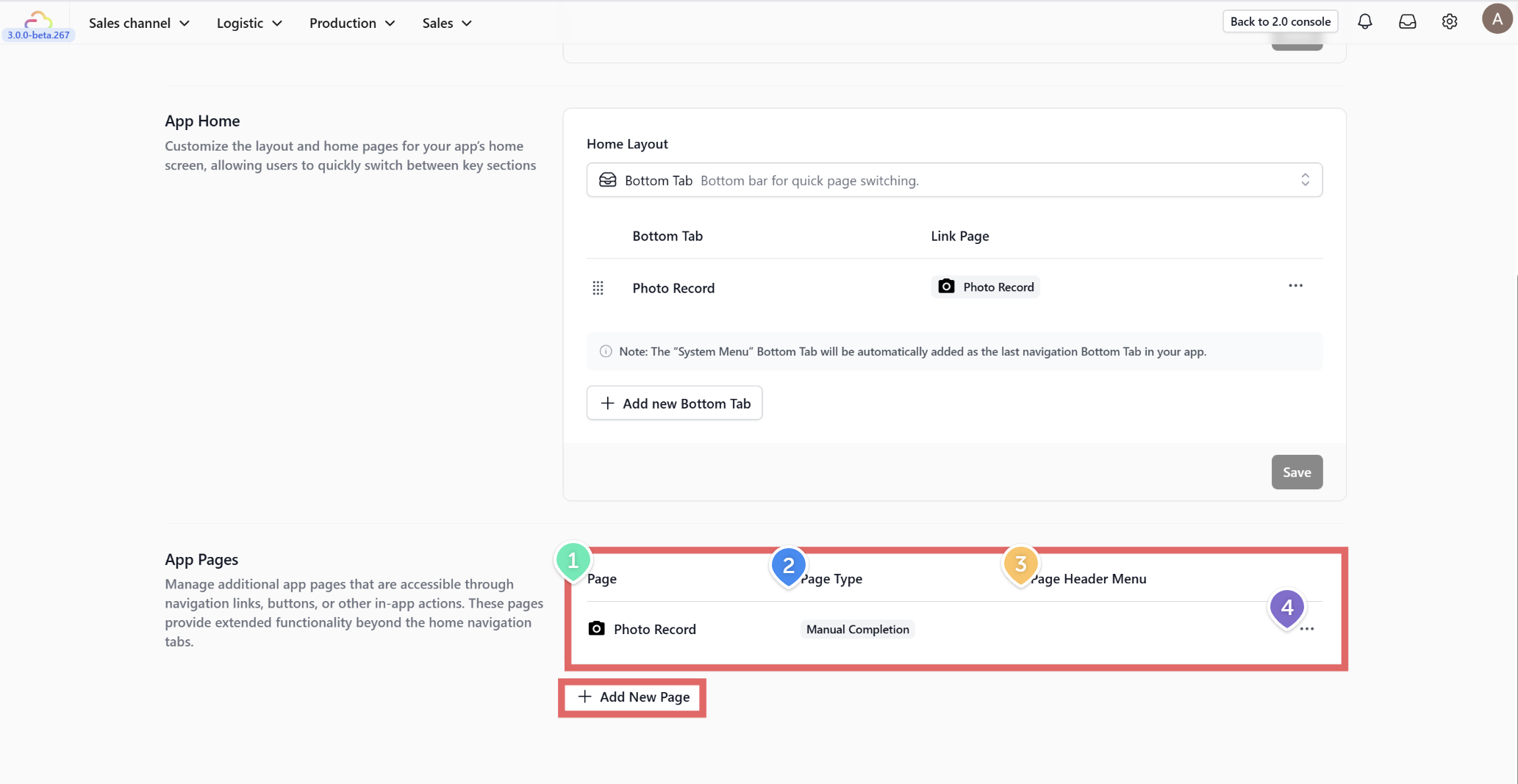 - + Add New Menu: Use this to expand your app's capabilities if you've created custom pages.