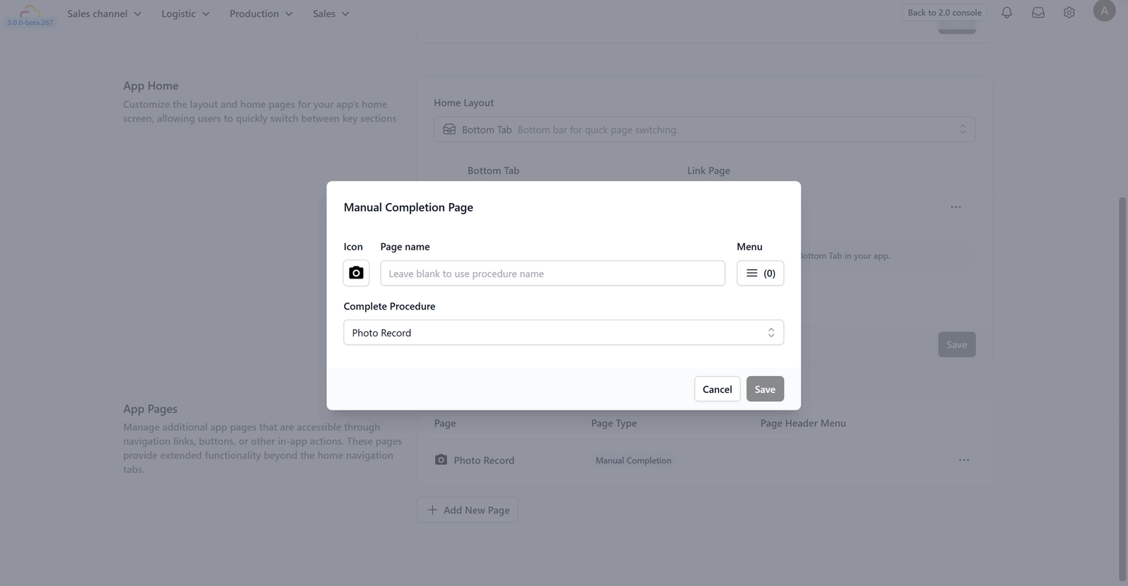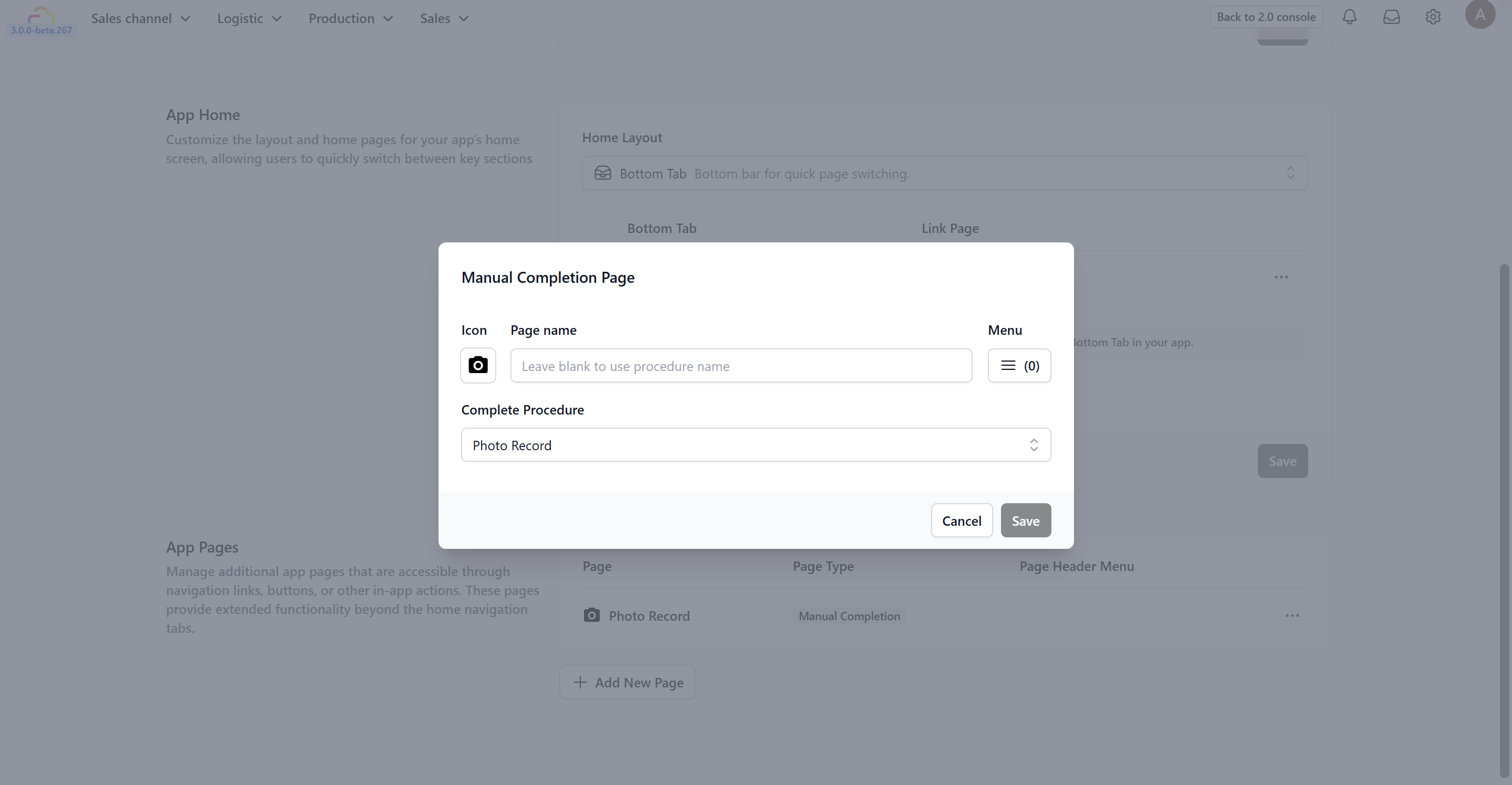 - Page Name: You can give this page a custom title like "Condition Photos" or "Quality Check". If you leave this blank, the system will automatically use the name of the linked procedure.