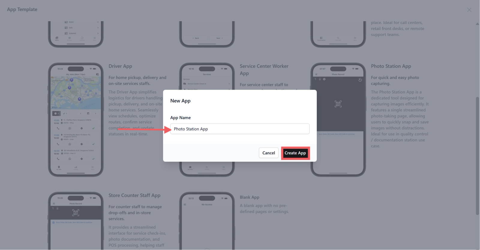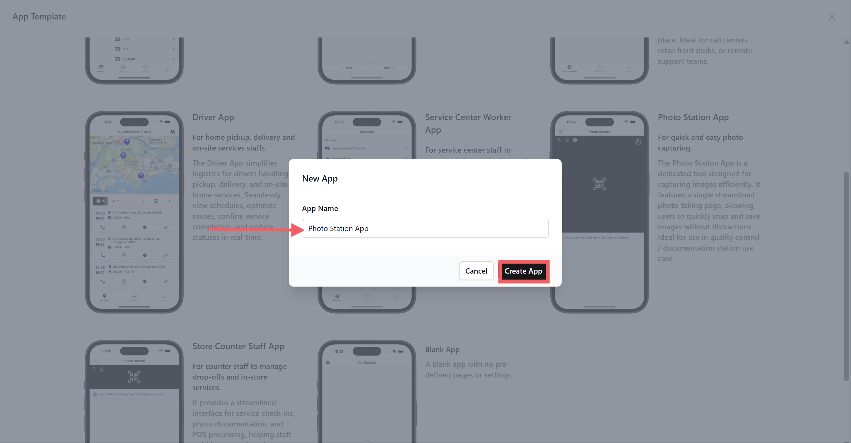 Rename your app: Keep the default "Photo Station App" or give it a custom name, then click Create App.