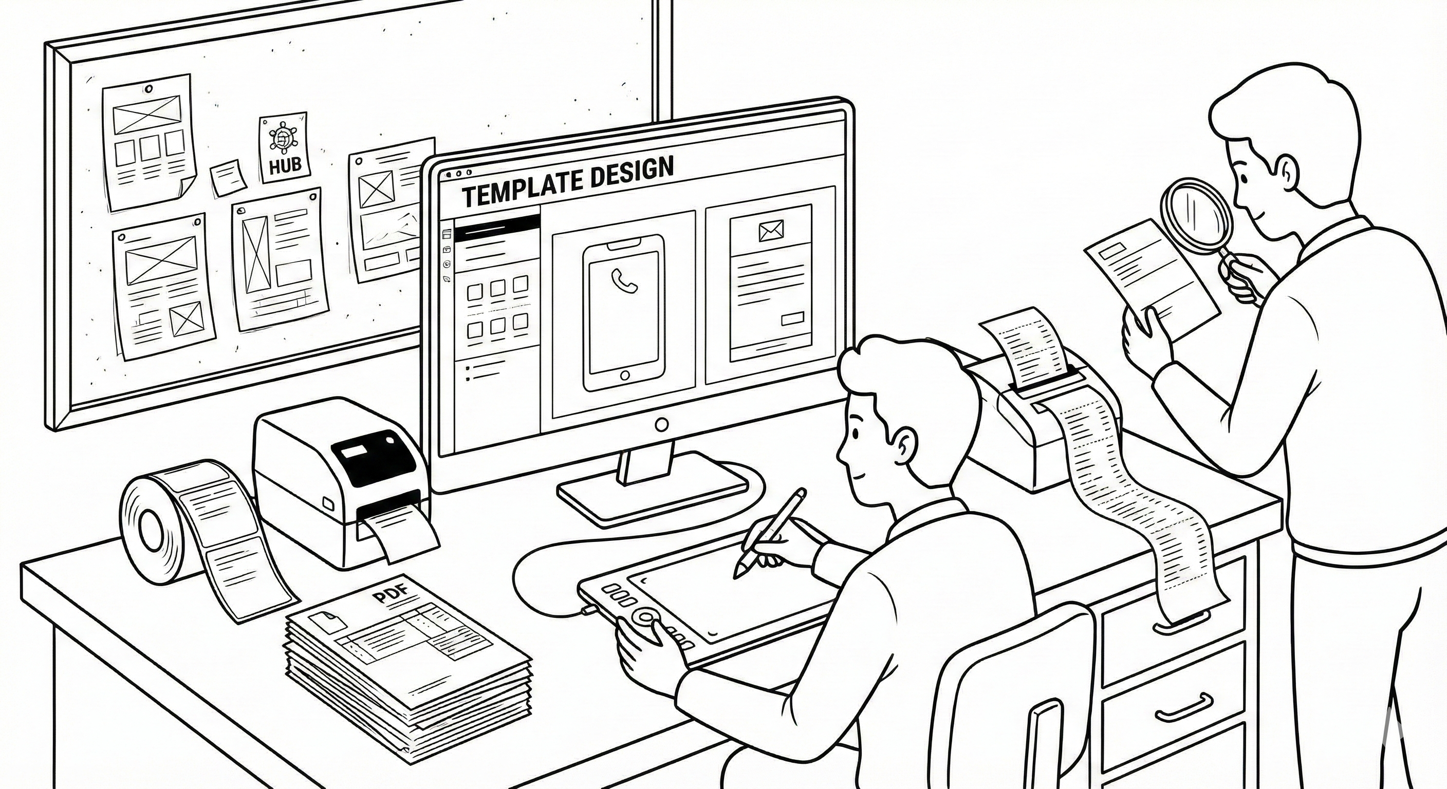 Your business identity, standardized. Templates act as the design blueprints for all your customer communications. Instead of manually formatting every document, use this section to define pre-approved layouts for Physical Labels, Receipts, PDF Invoices, and digital notifications. Set it up once, and ensure every output is professional, consistent, and on-brand.