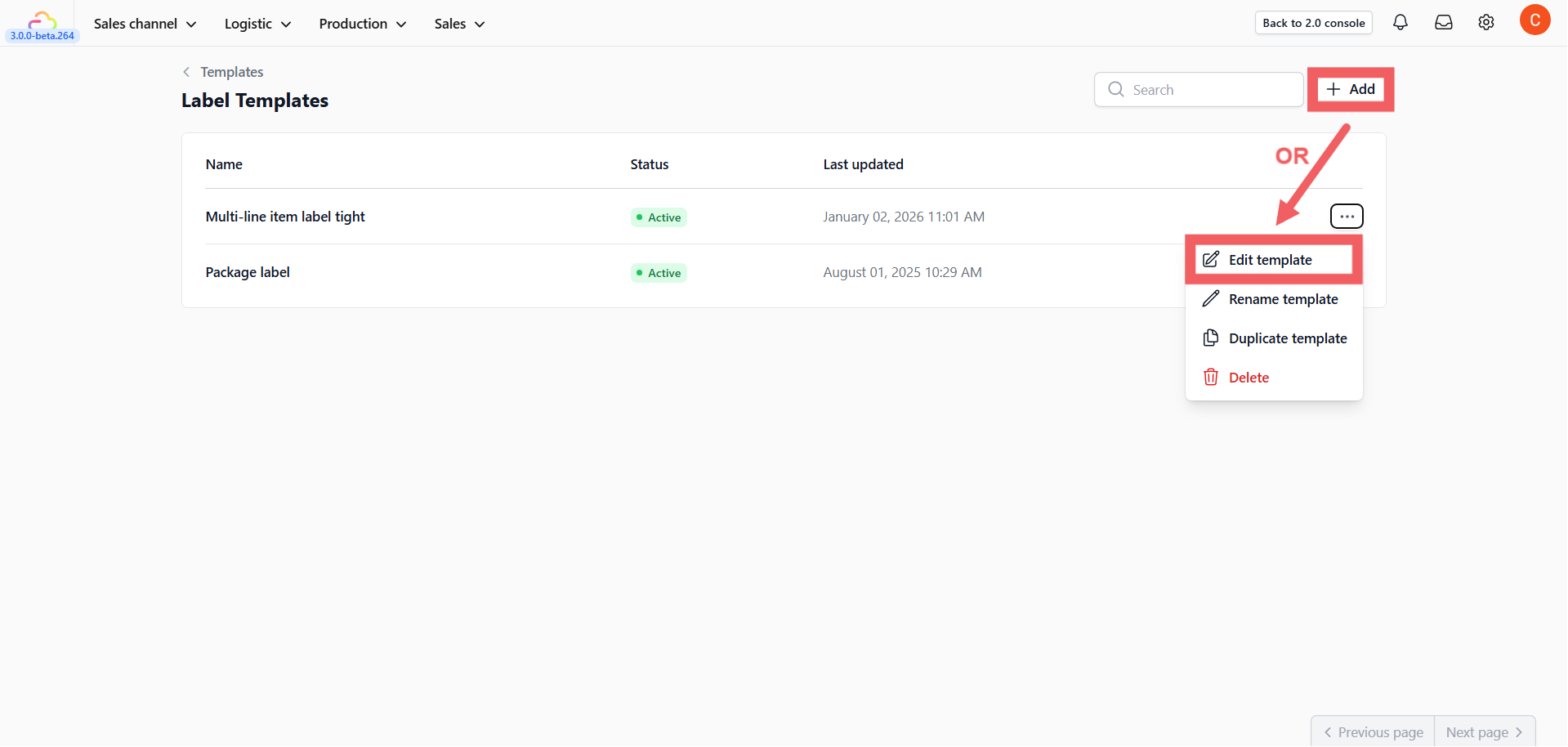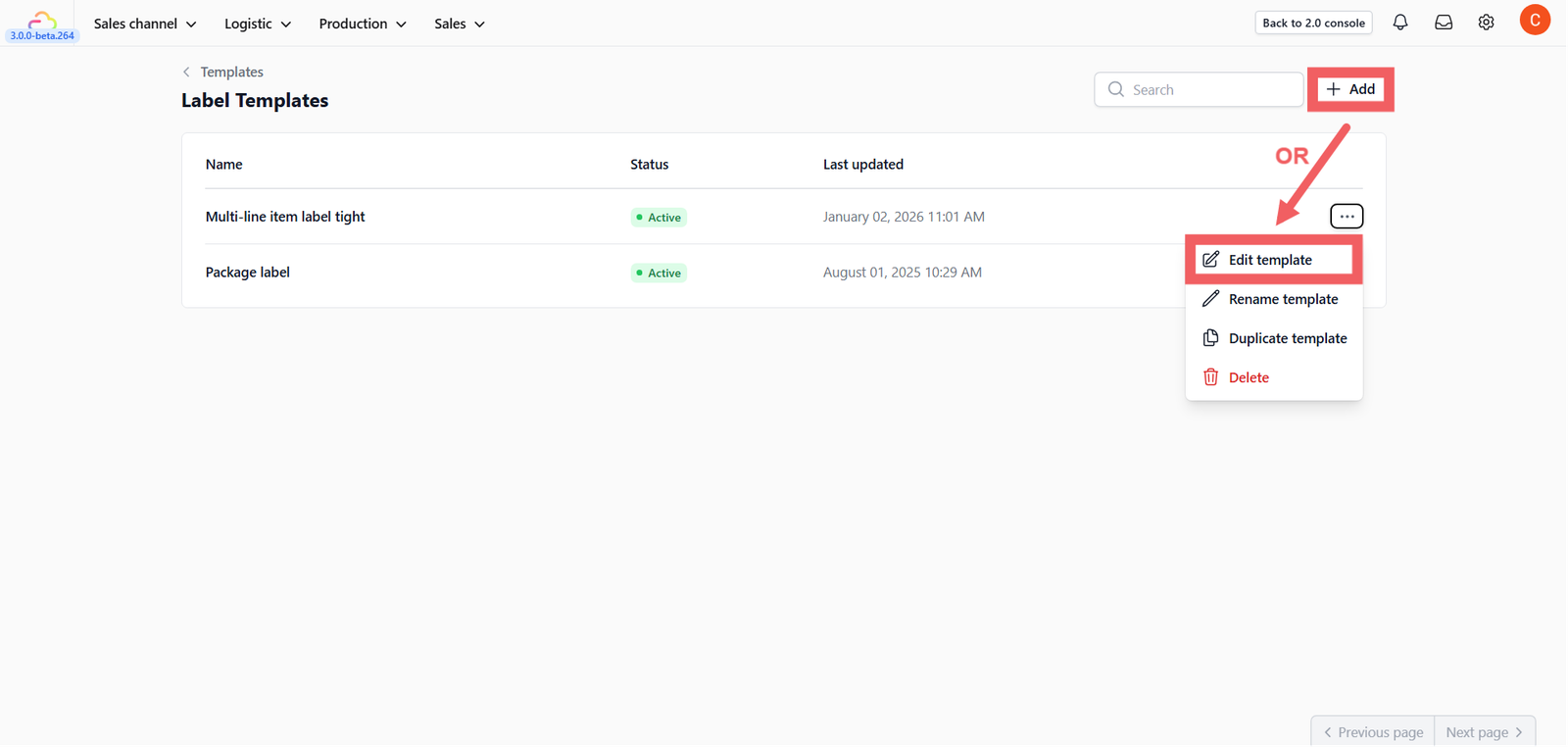 You can edit these existing templates or click + Add to create a new one based on standard layouts.