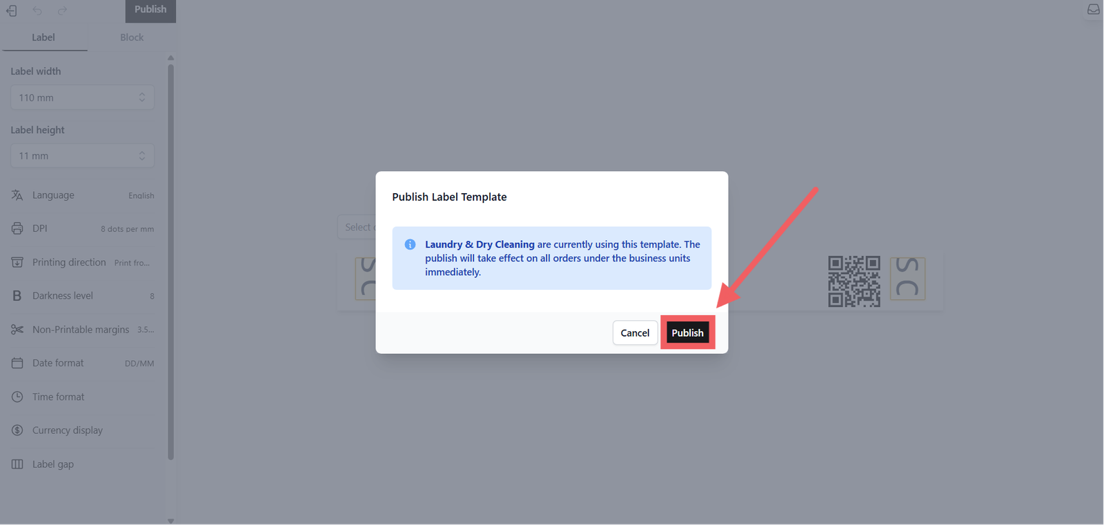 - Item Label: Select your newly published template (e.g., Multi-line item label tight). This is used to identify individual items in an order for tracking.