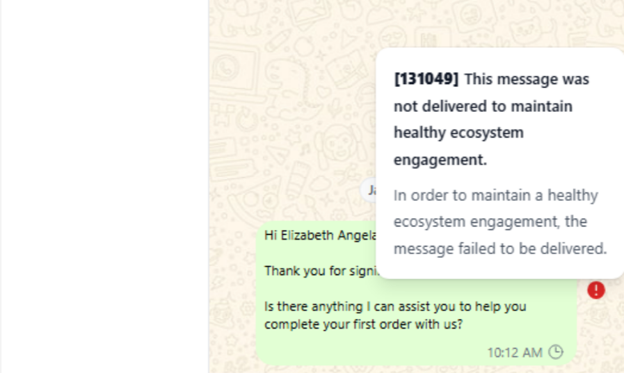 If your Marketing messages suddenly stop being delivered, it's because WhatsApp has temporarily paused them due to low engagement from your recipients. — this is Error 131049, Meta's way of preventing spam.