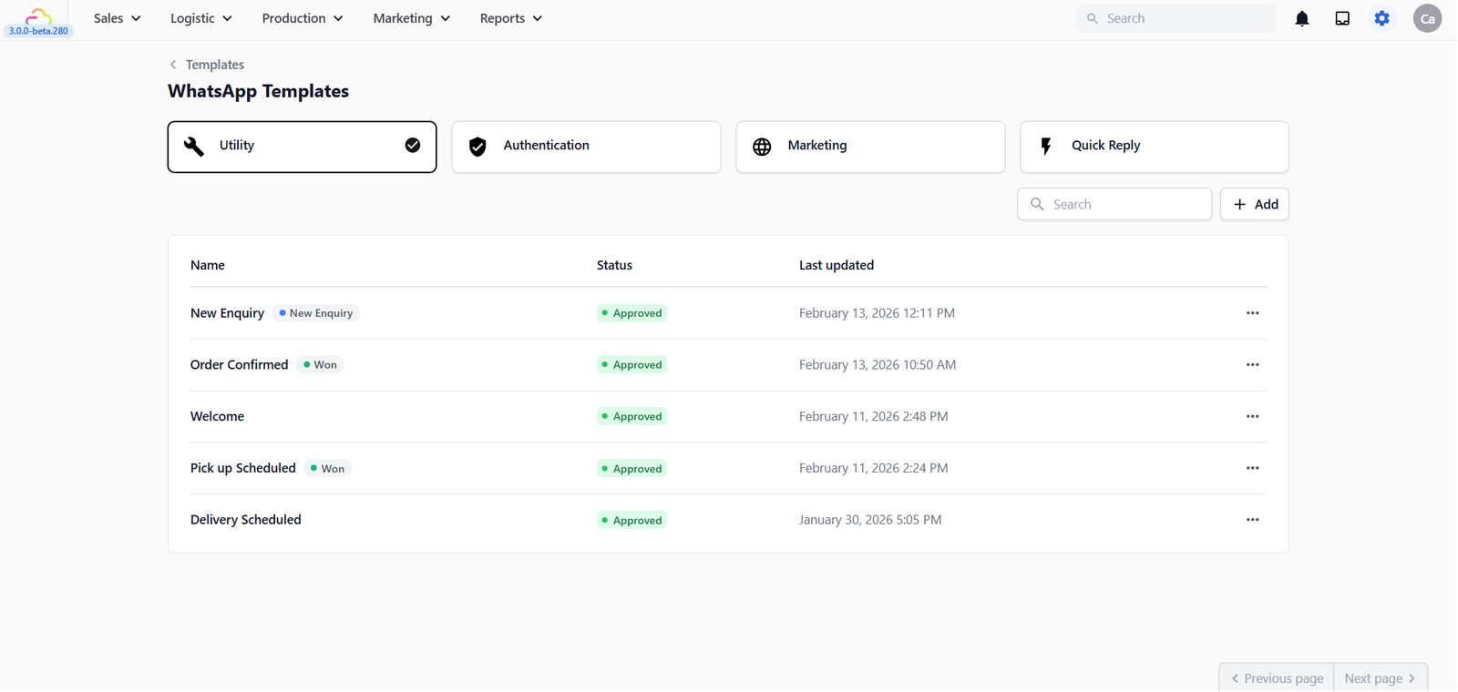 1. Utility — For order and service updates. Use this for things like order confirmations, collection notices, payment reminders, and receipts. These are the most commonly used templates for service businesses.