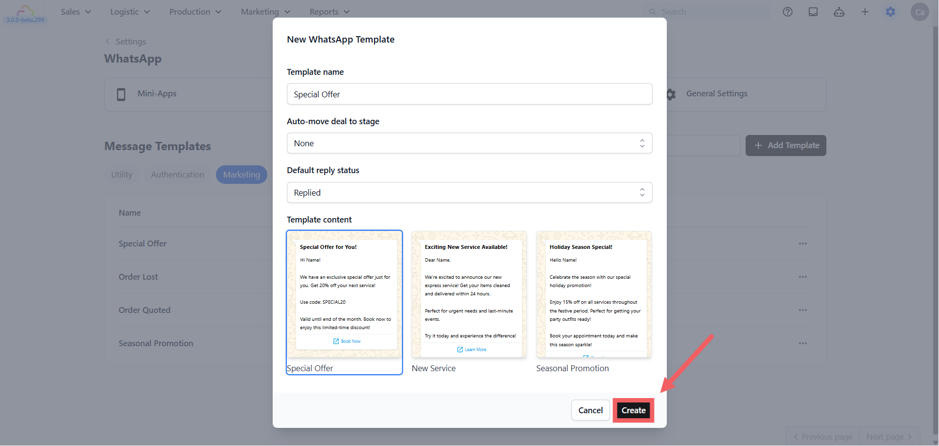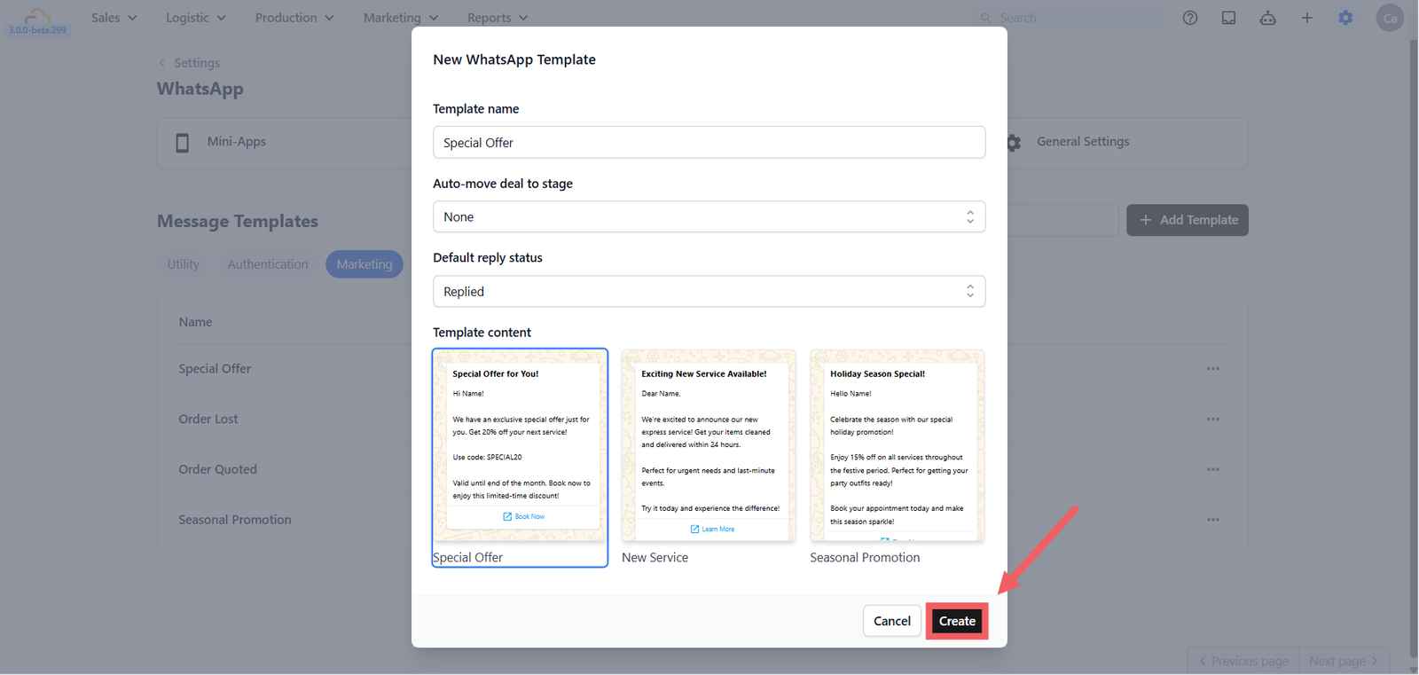 - Select your approved Marketing template