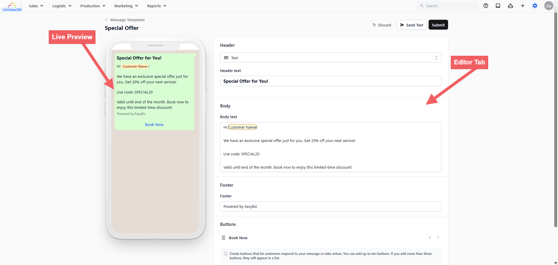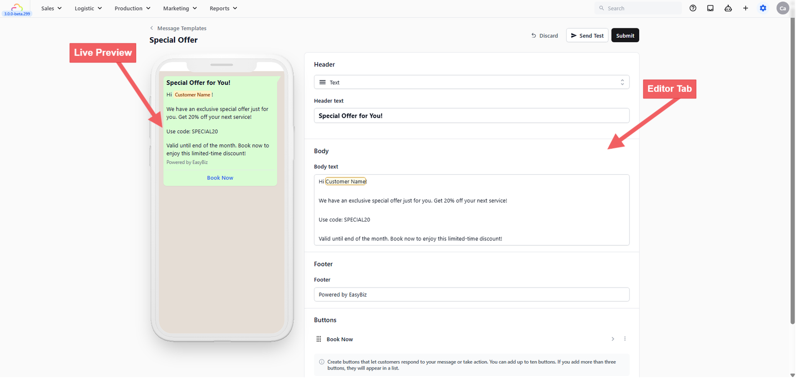 EasyBiz provides 3 ready-made Marketing templates to get you started.